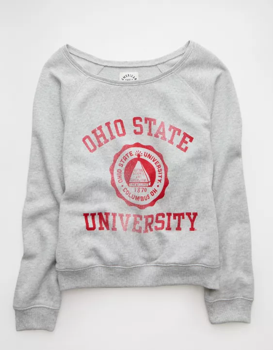 AE Ohio State Buckeyes Graphic Off The Shoulder Sweatshirt Heather Gray