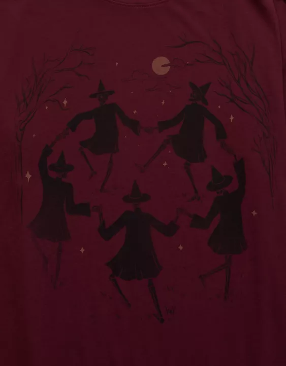 AE Oversized Halloween Graphic T-Shirt Wineberry