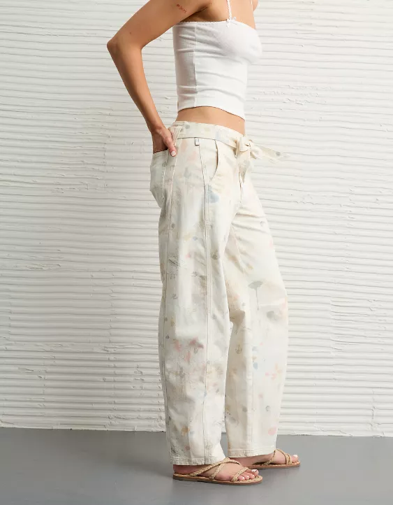 AE Dreamy Drape Stretch Low-Rise Baggy Wide-Leg Pant Soft Oat