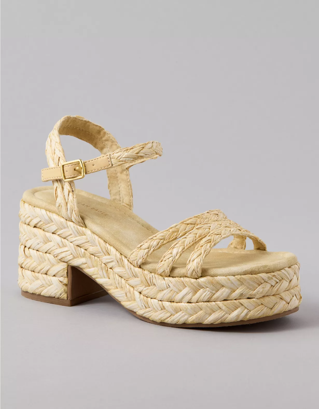 Elevate your look with this platform sandal, featuring raffia for those summery boho vibes.
