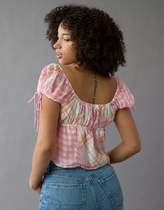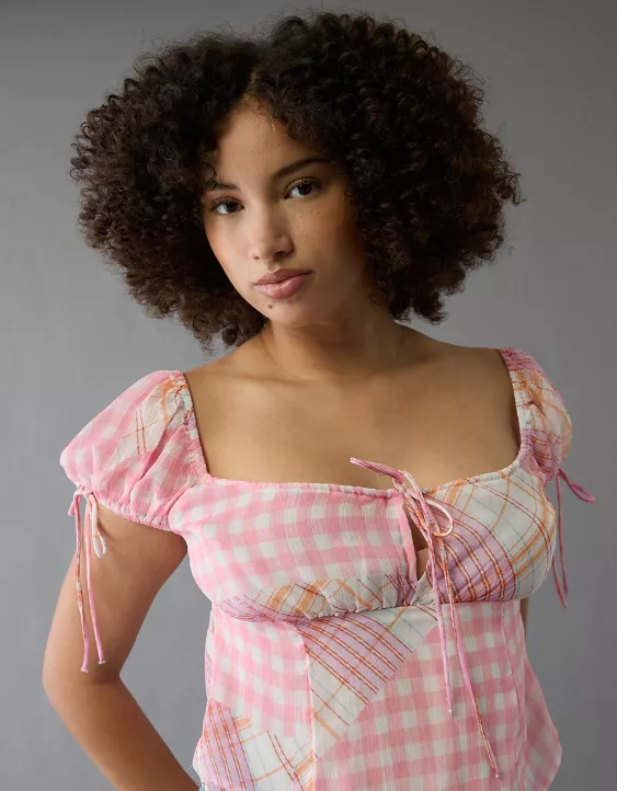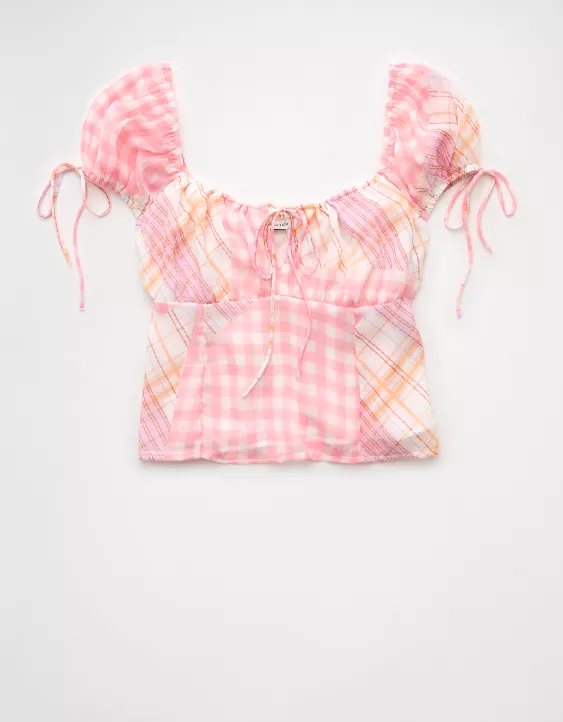 AE Satin Cap Sleeve Patchwork Corset Top Pink