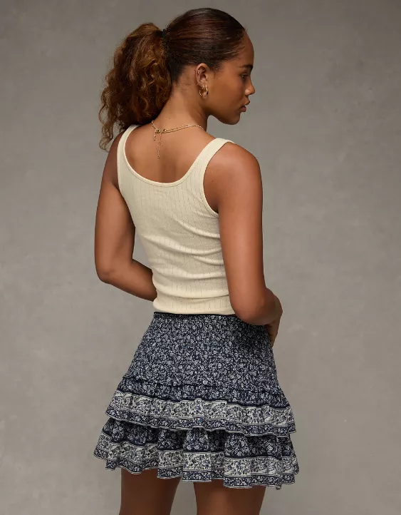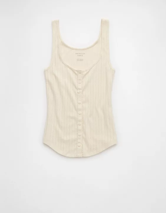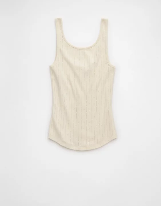 A femme, fitted tank with a scoop neck and delicate pointelle detailing, perfect for a romantic, day-to-night vibe.