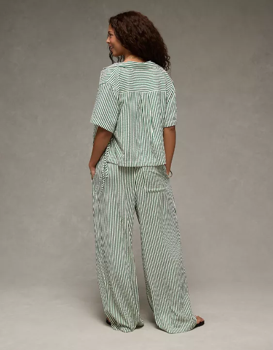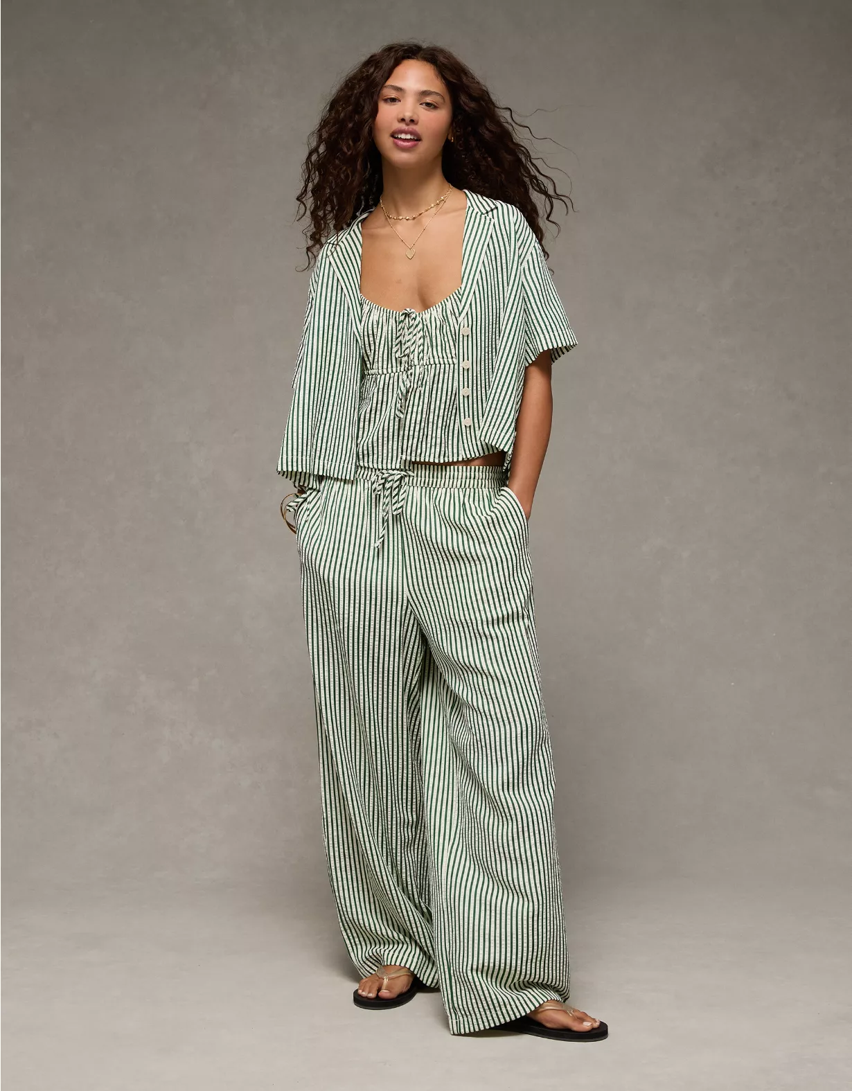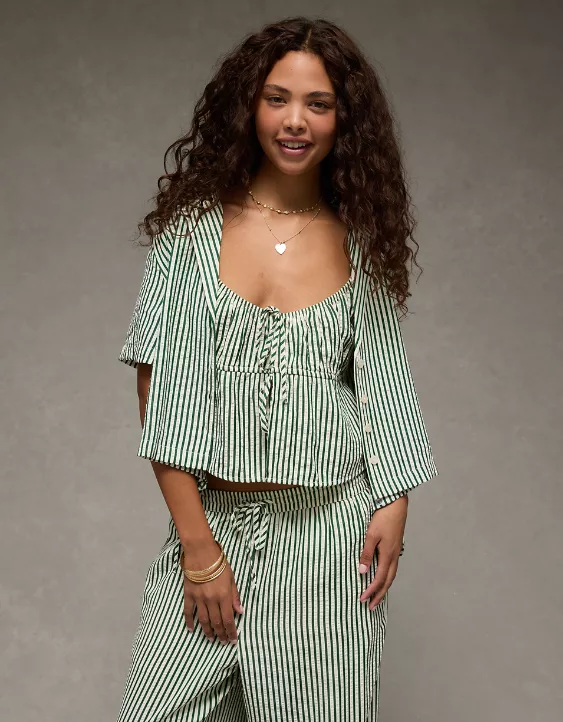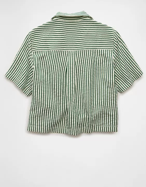 AE Short-Sleeve Tie Side Seersucker Button-Up Shirt Green