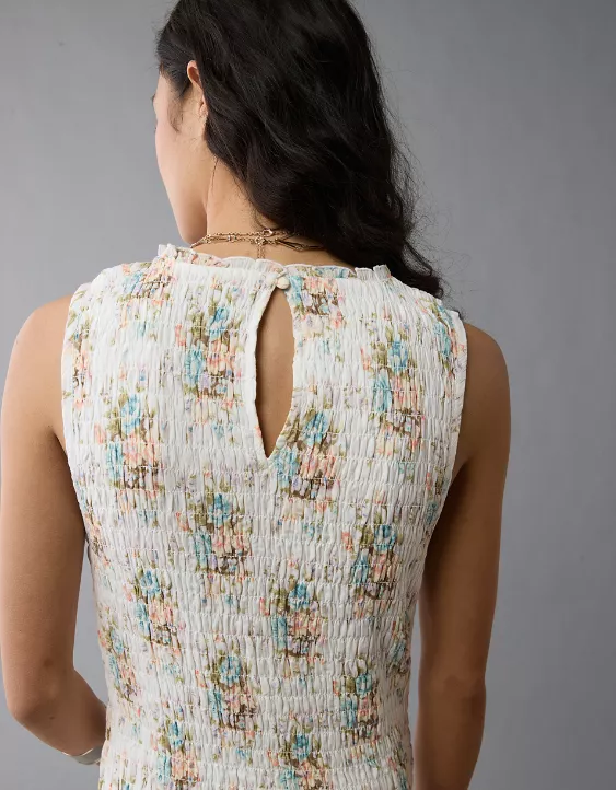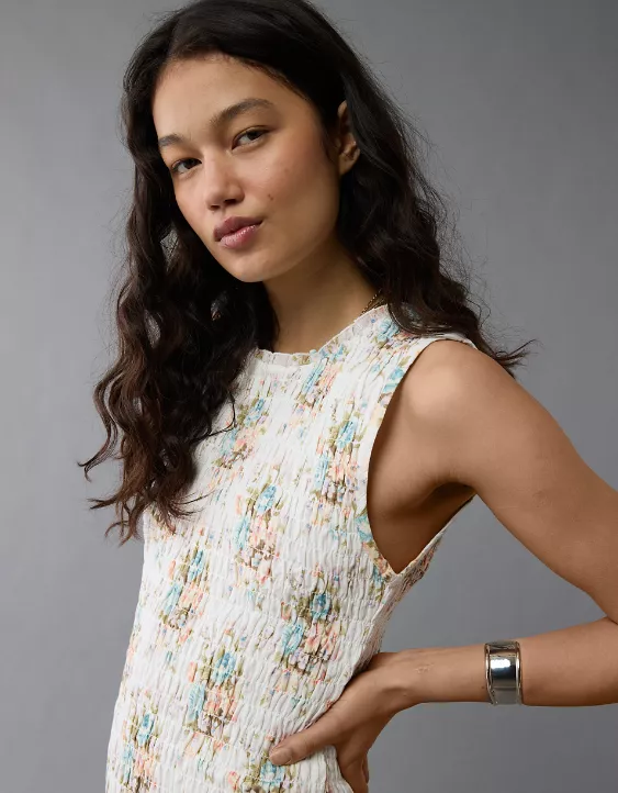 A slinky silhouette that’s perfect for dressing up or down, made with smocked fabric that holds you in.