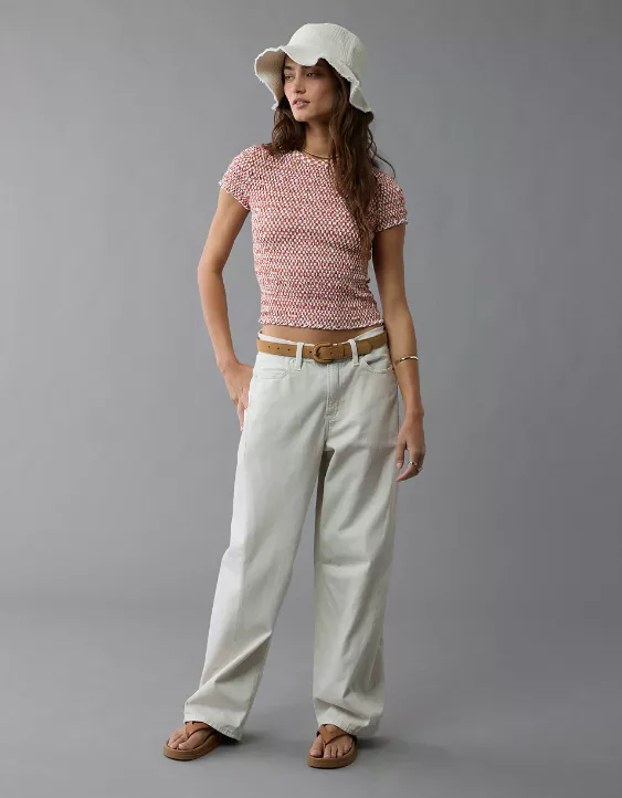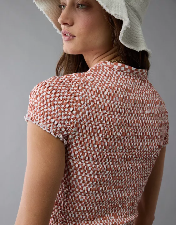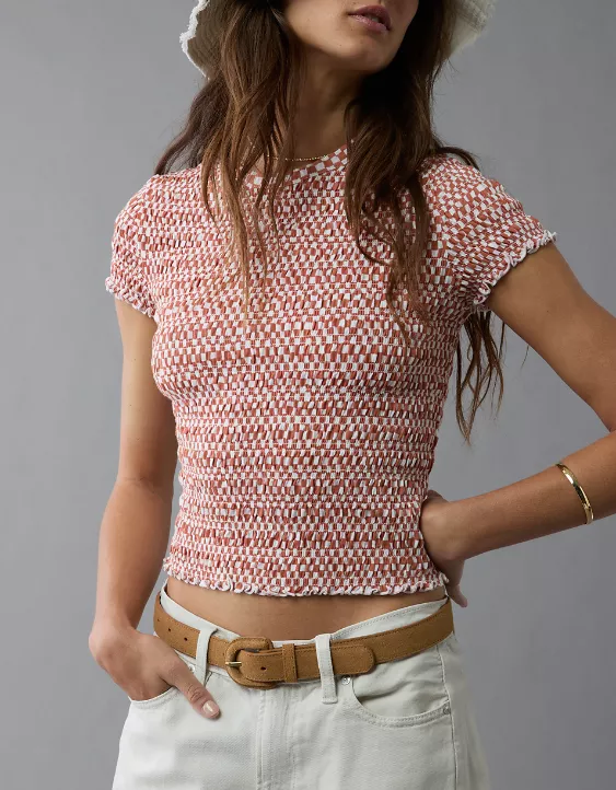 Our iconic ’90s-inspired shrunken silhouette, made from smocked fabric that holds you in.