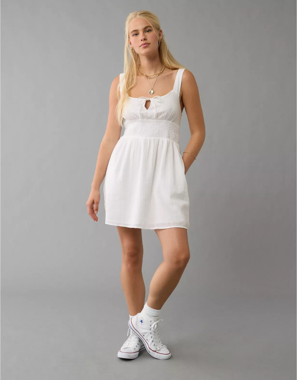 A fun, flouncy mini, featuring a smocked waist that holds you in just right.
