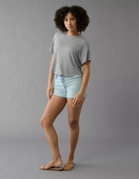 AE Soft & Sexy Boxy T-Shirt Medium Heather Gray