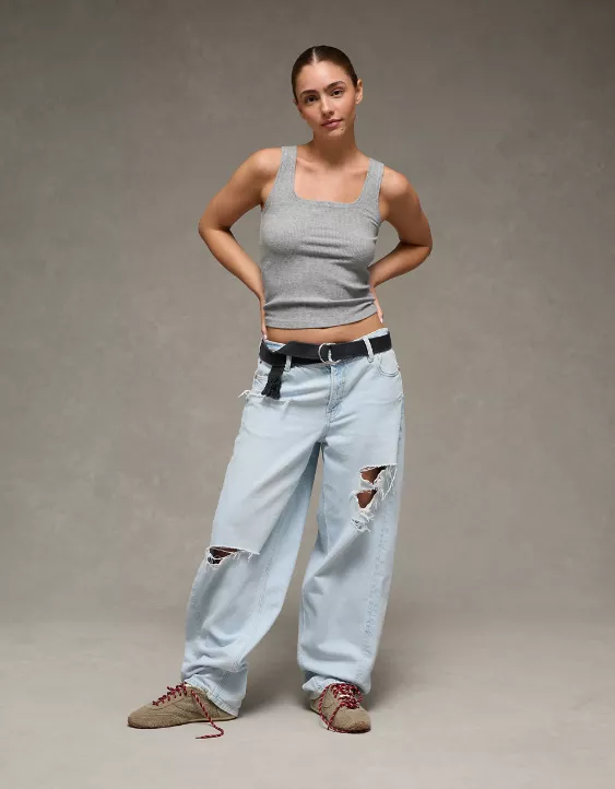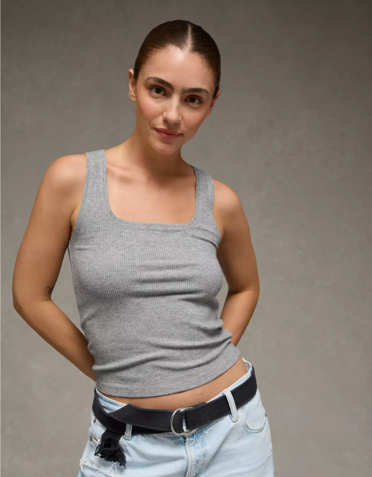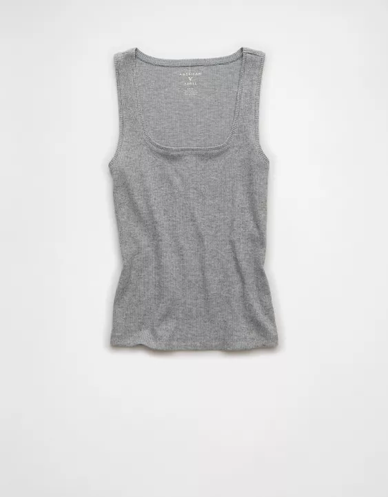 AE Square Neck Plush Tank Top Medium Heather Gray