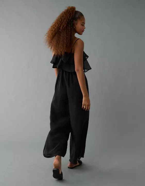 A special occasion ‘fit with a bold wide leg, featuring ruffles for a femme touch.