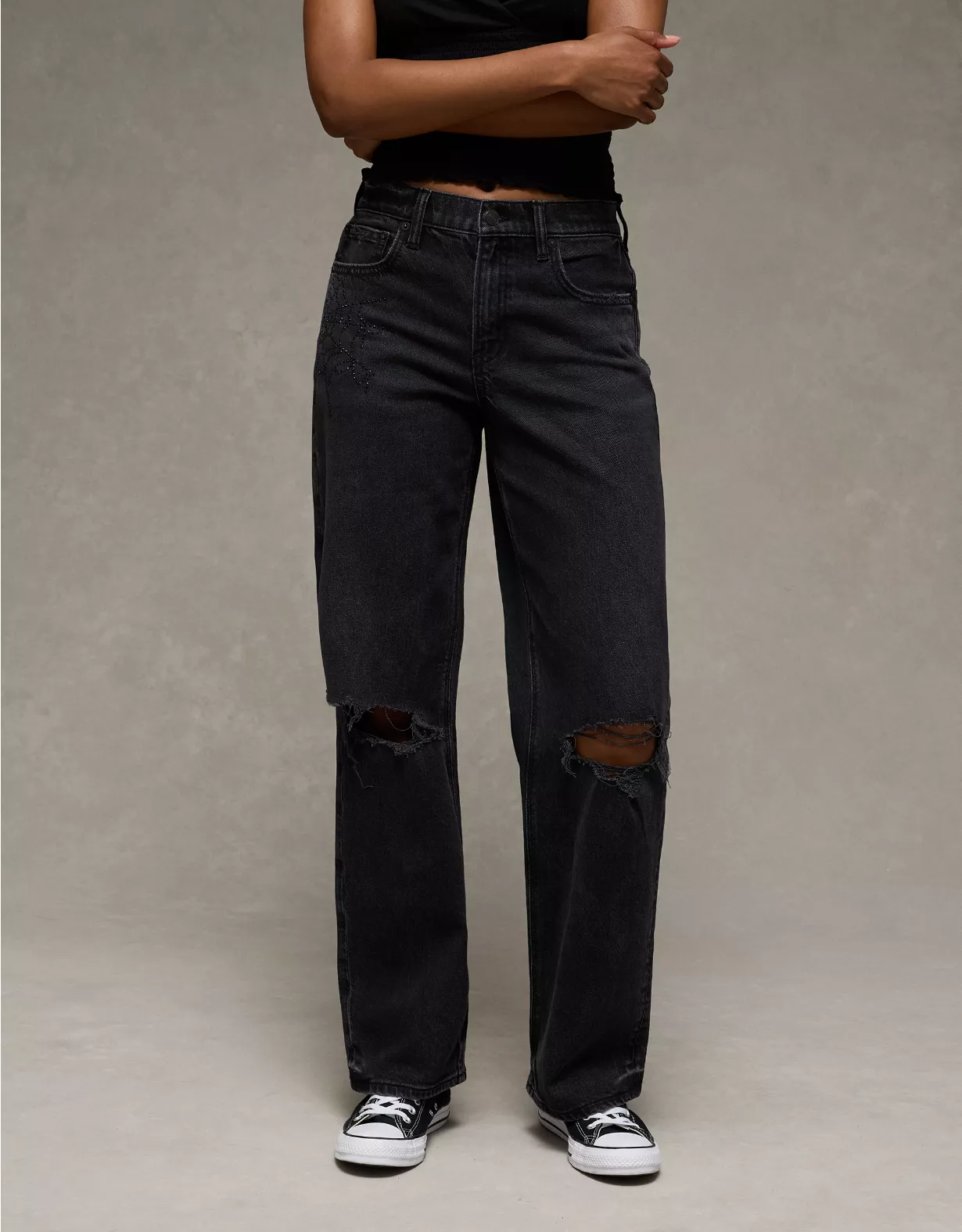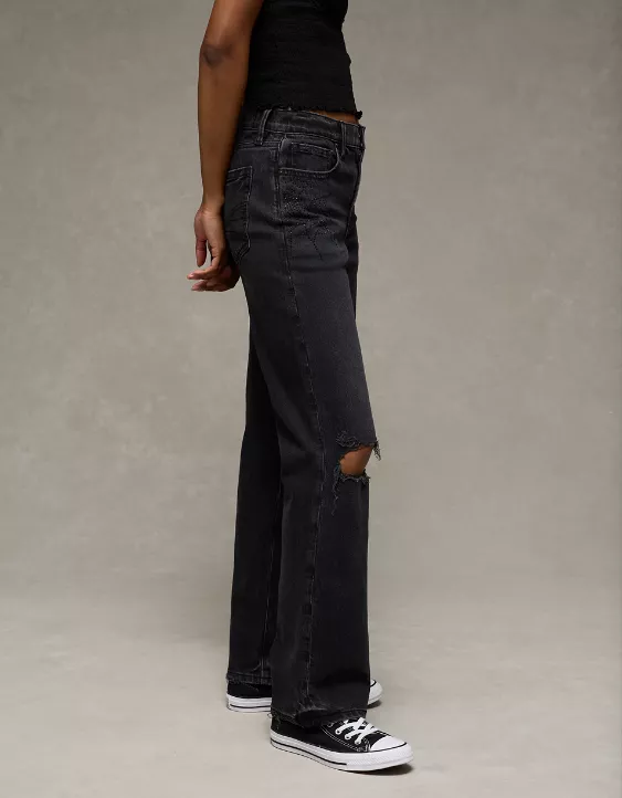 AE Stretch High-Waisted Spiderweb Stovepipe Jean Raven Black