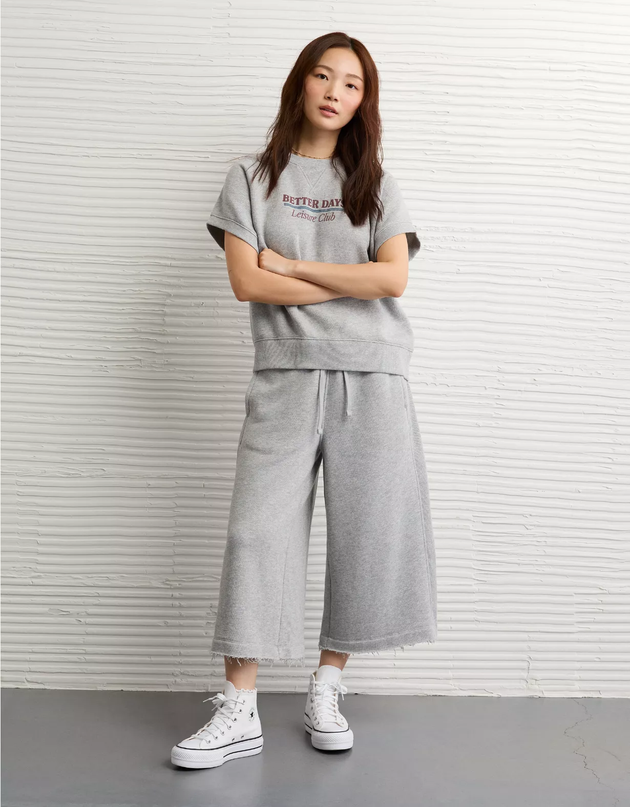 AE Stretch Knit Culotte Pant Medium Heather Gray