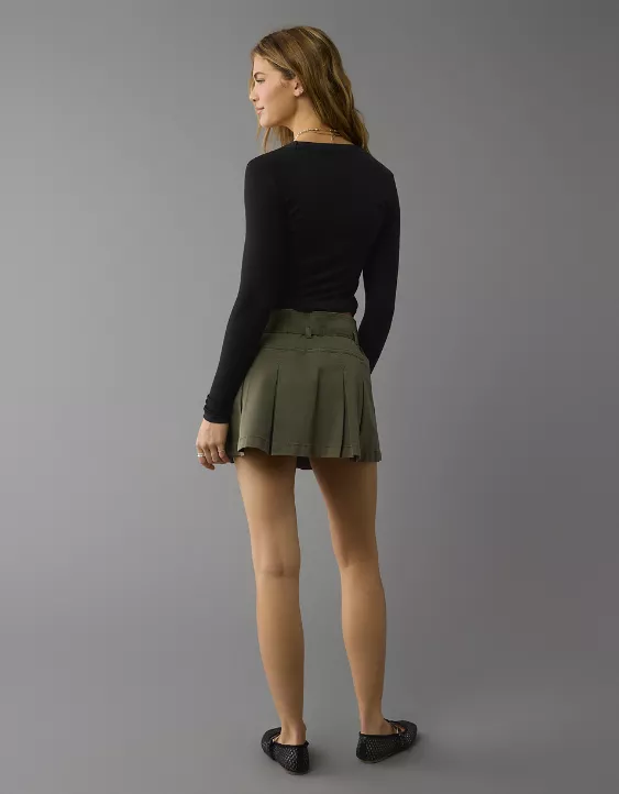 A preppy cheerleader-inspired silhouette, featuring a value-up front and a self-tie belt for some extra pizzaz.