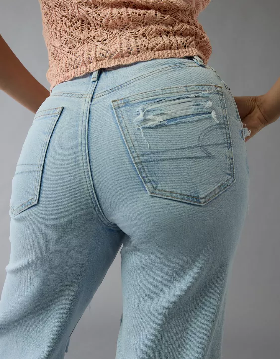 AE Strigid Curvy Ripped Super High-Waisted Baggy Straight Jean Ultra Light Crackle
