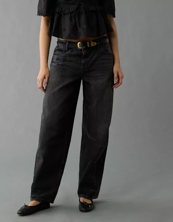 AE Strigid Low-Rise Baggy Barrel Jean Washed Black
