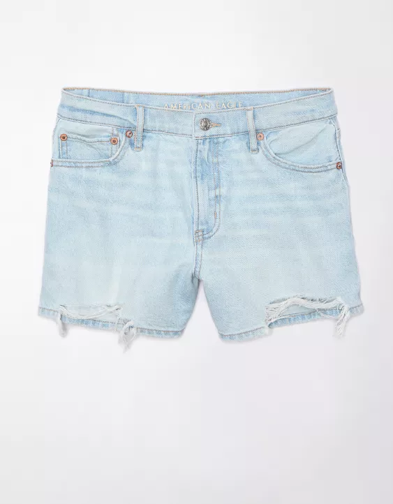 AE Strigid Super High-Waisted Relaxed Ripped Denim Short Light Wash