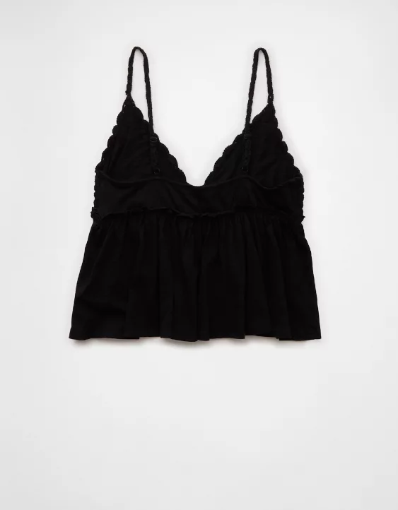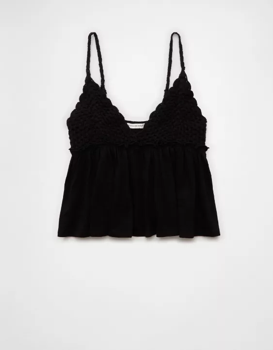 Chase the sun in this summer-ready babydoll top, featuring a crochet-inspired top for some extra boho texture.