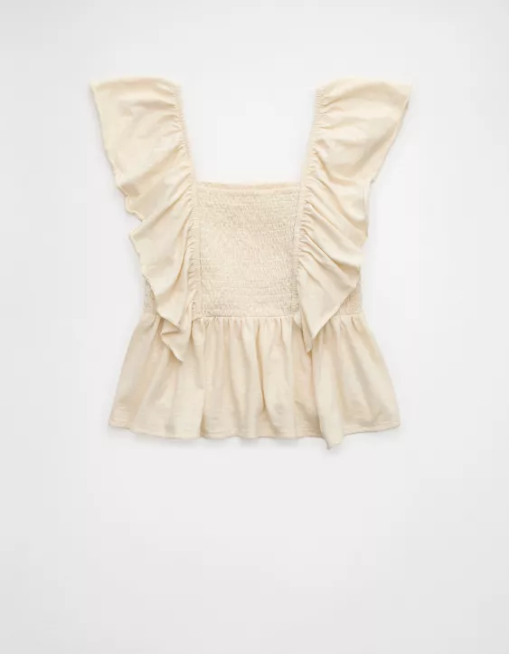 AE Sunchaser Knit Flutter Sleeve Babydoll Shirt Cream