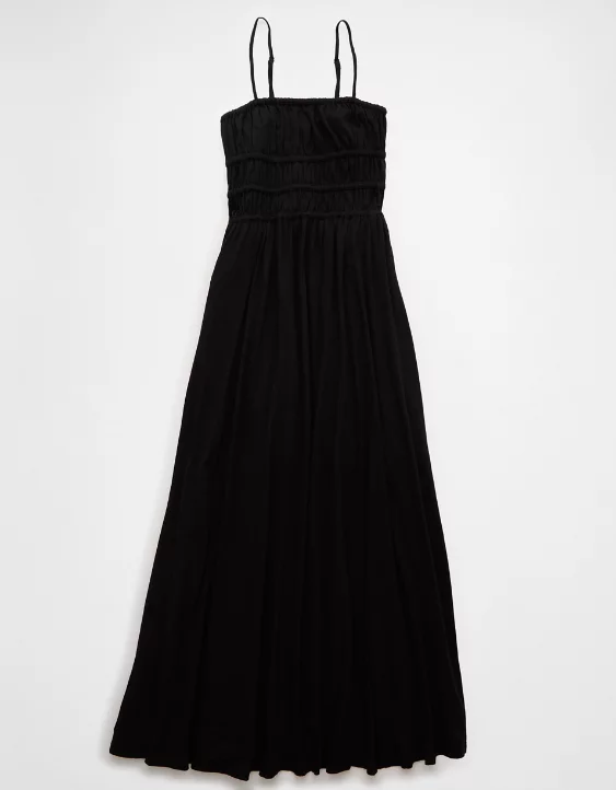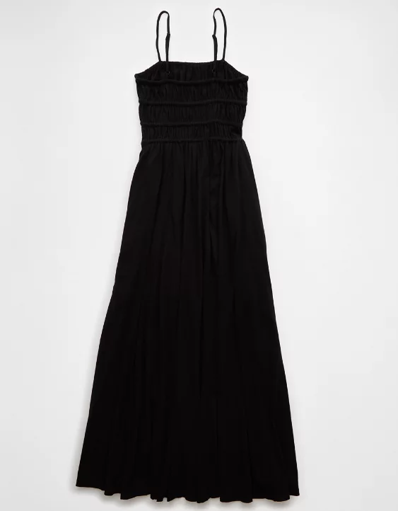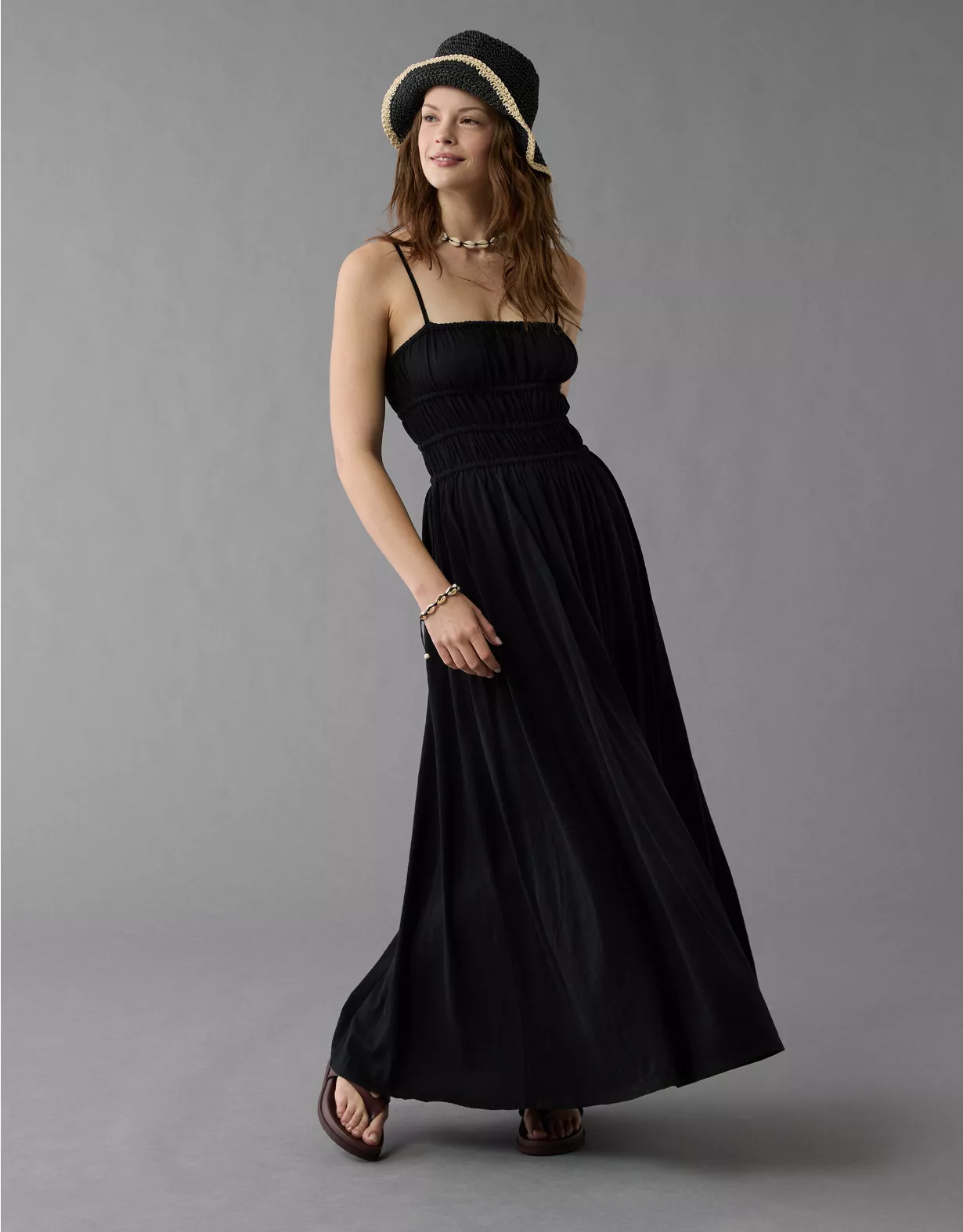 AE Sunchaser Knit Smocked Bodice Midi Dress Black