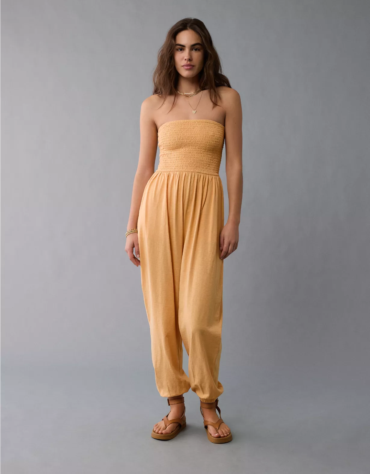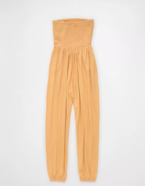 Chase the sun in this breezy jumpsuit, featuring a voluminous jogger bottom and a smocked tube top/