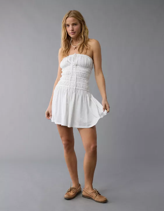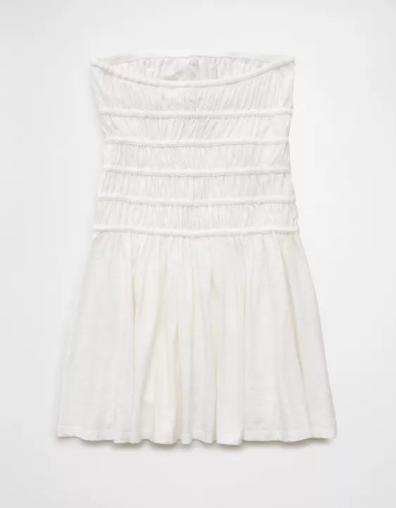 AE Sunchaser Knit Strapless Smocked Bodice Mini Dress Cream