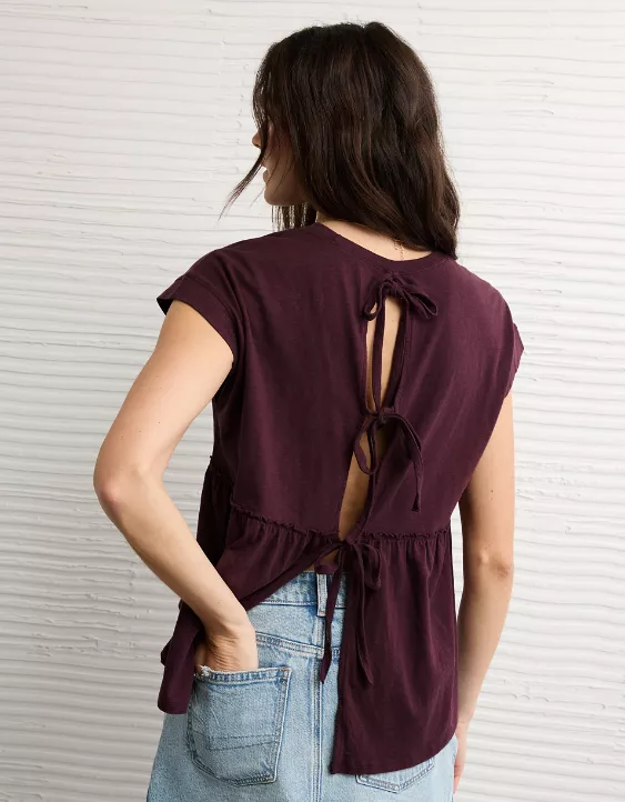 AE Sunchaser Knit Tie Back Babydoll T-Shirt Moonlight