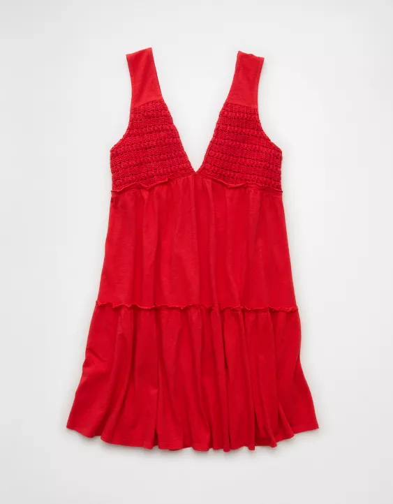 AE Sunchaser Knit V-Neck Crochet Mini Dress Cherry