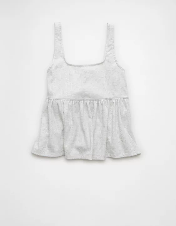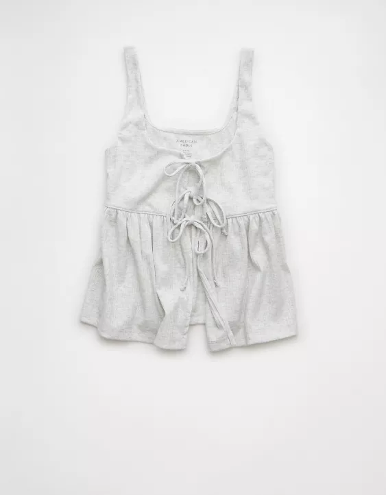 AE Tie Front Flyaway Babydoll Tank Top Light Heather Gray