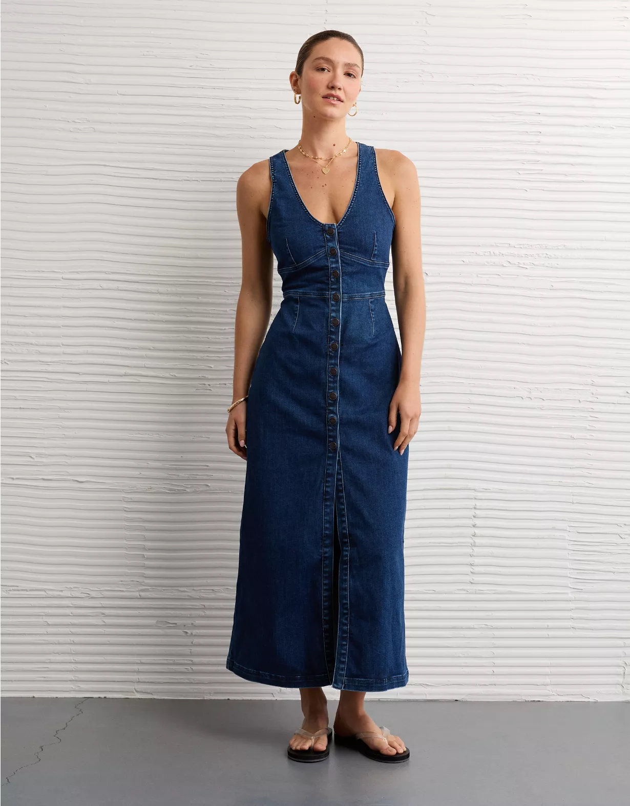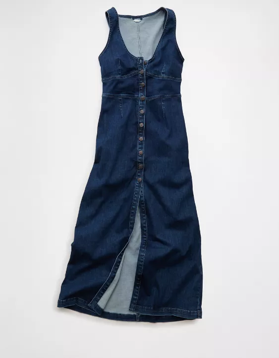 The perfect statement dress with an ultra-flattering plunge v-neck, made from your fave AE denim.