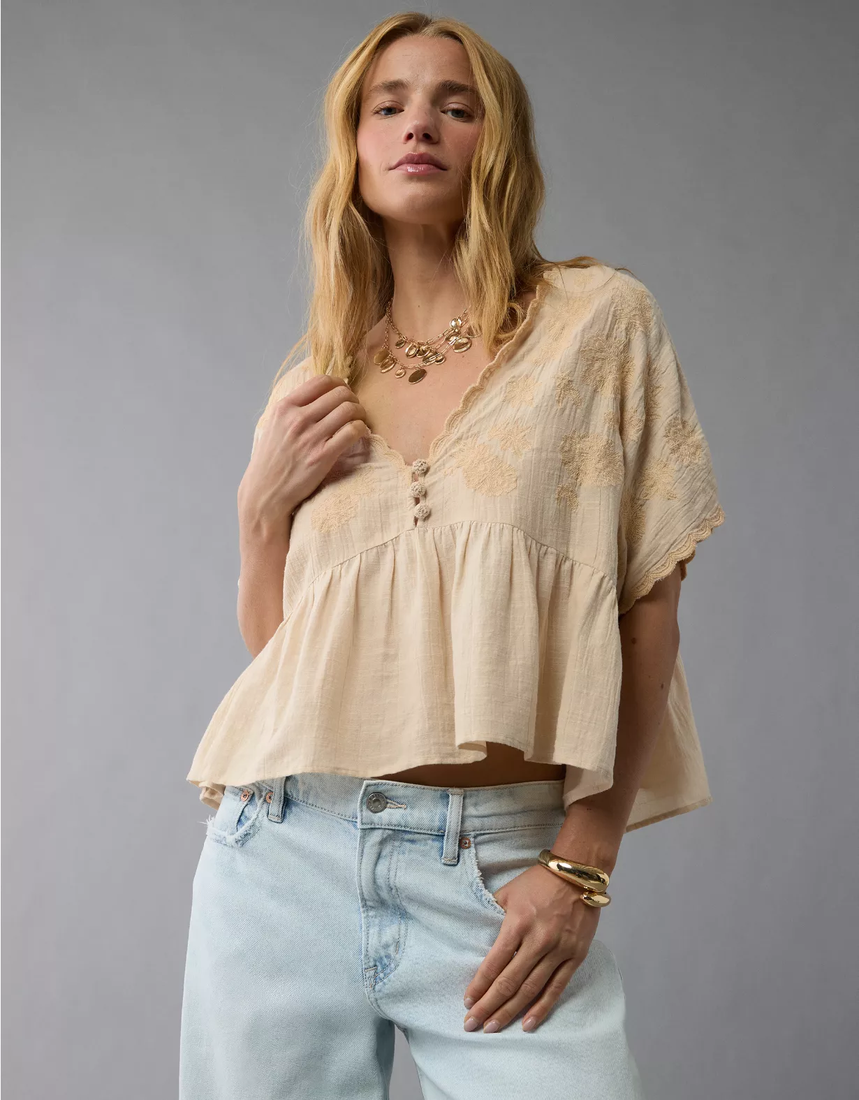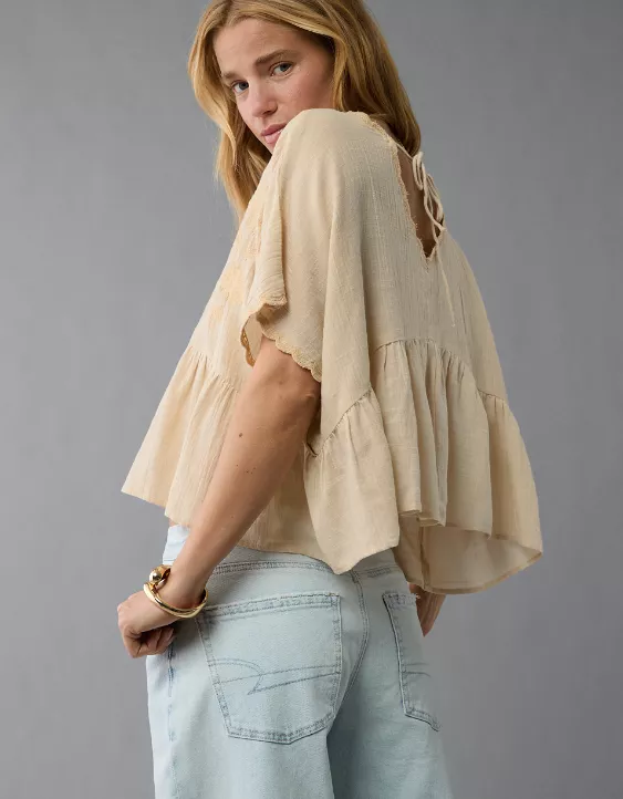 A femme, flowy blouse, perfect for pairing with your favorite jeans or dressing up for a night out.
