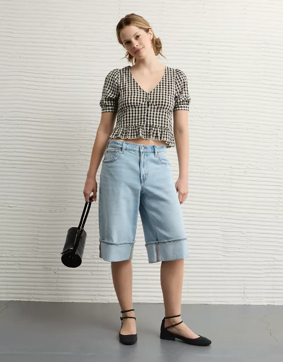 A femme, flattering top with a statement-making plunge v-neck & puff sleeve combo.
