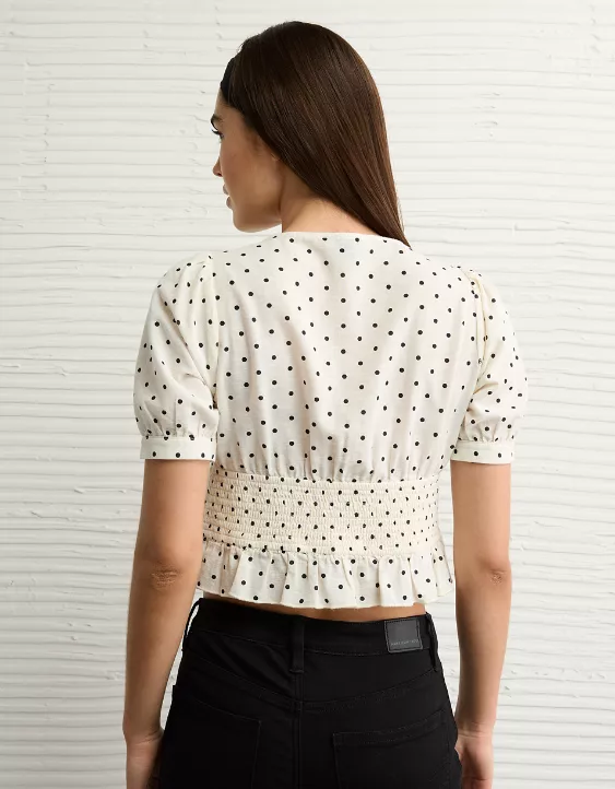 A femme, flattering top with a statement-making plunge v-neck & puff sleeve combo.