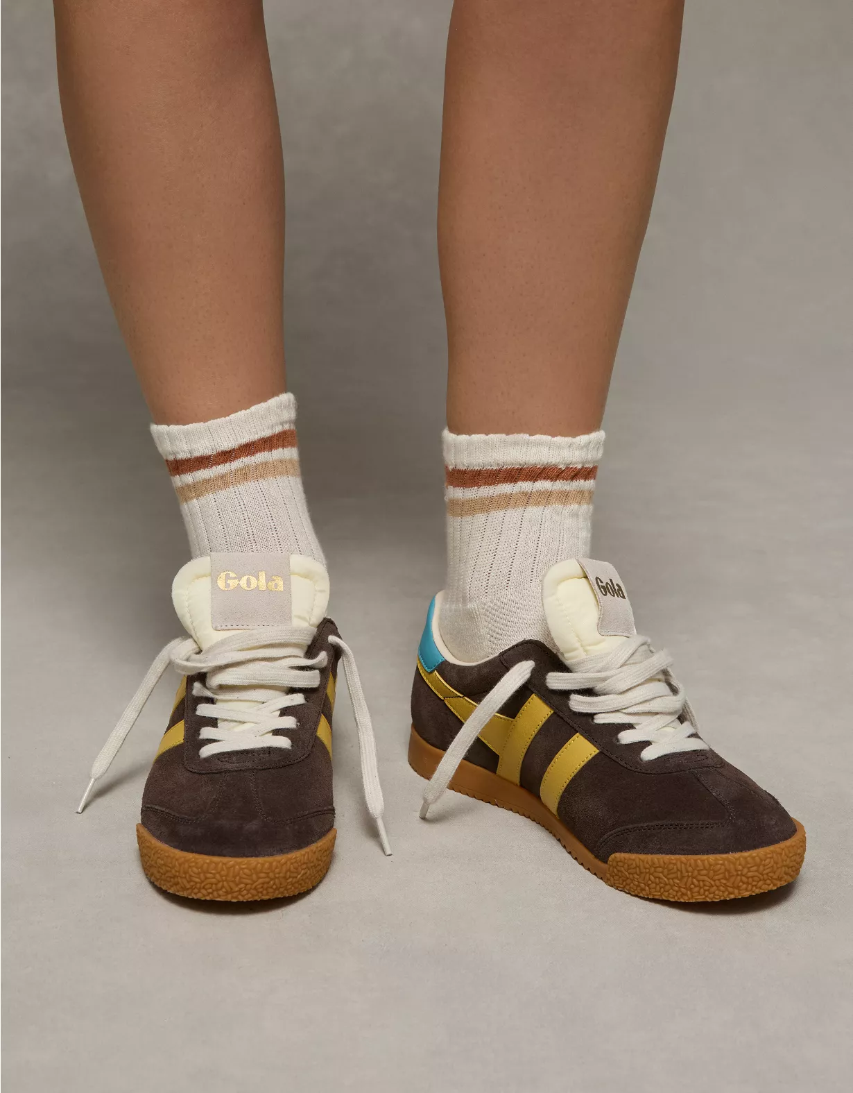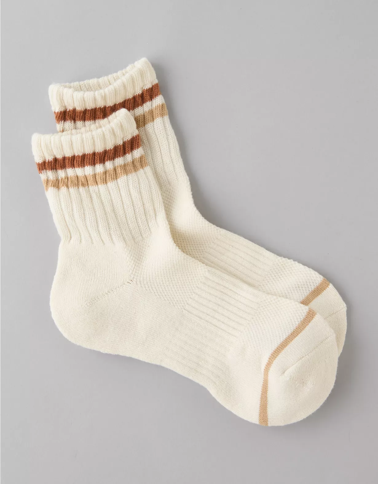 AE Varsity Stripe Cropped Crew Socks Cream