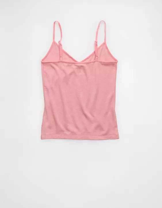 A soft, fitted cami with velvet trim, perfect for layering under chunky knits or shining solo for a cozy, chic look.