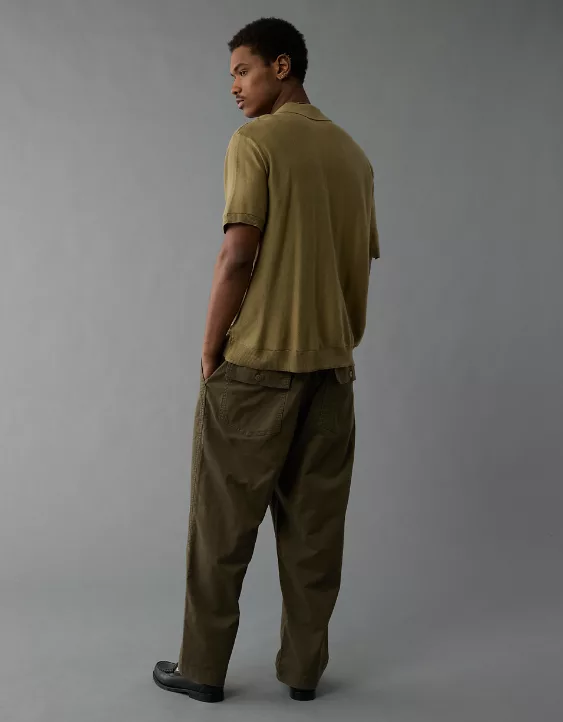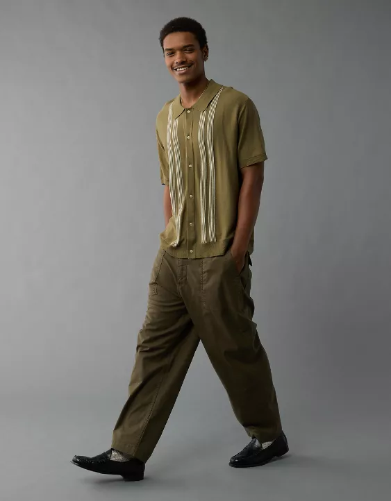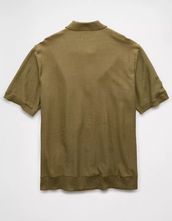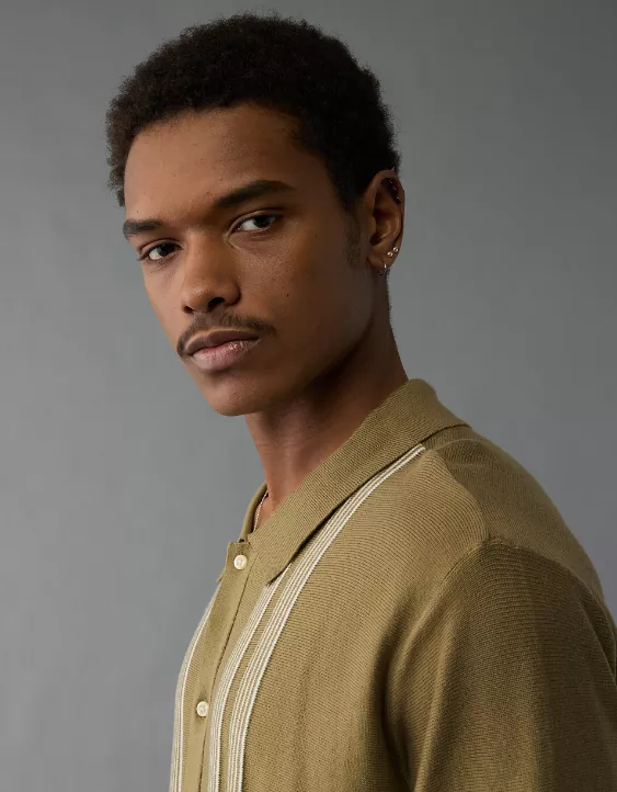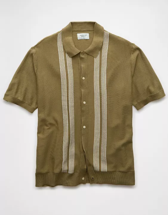 AE Weekend Button-Up Striped Sweater Polo Shirt Green