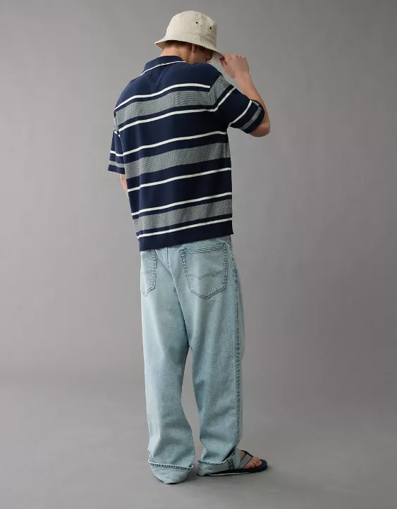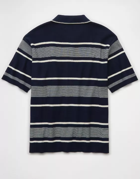 AE Weekend Jersey Striped Sweater Polo Shirt Deep Navy