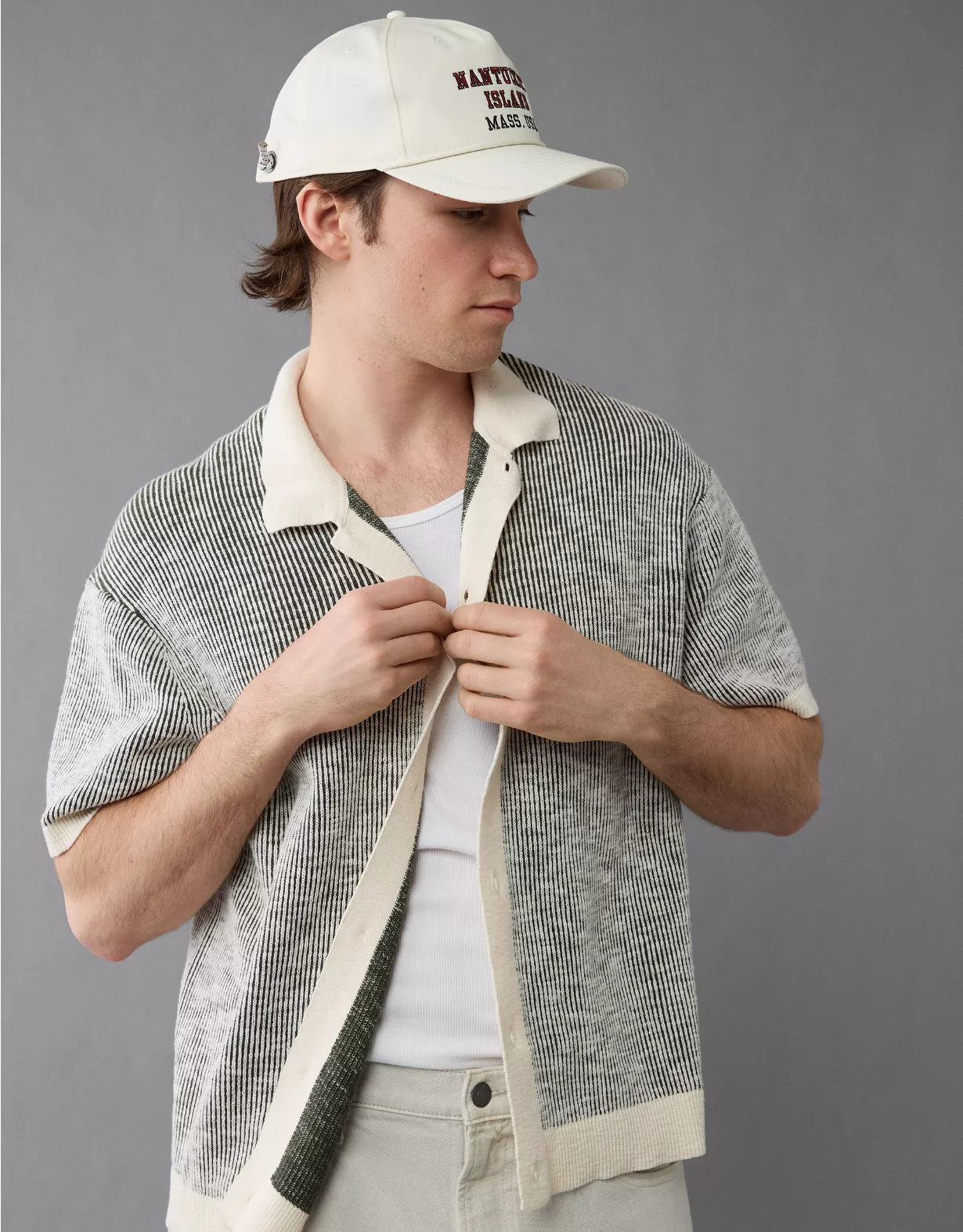A fresh take on your go-to polo, featuring an intricate striped knit for some extra texture.