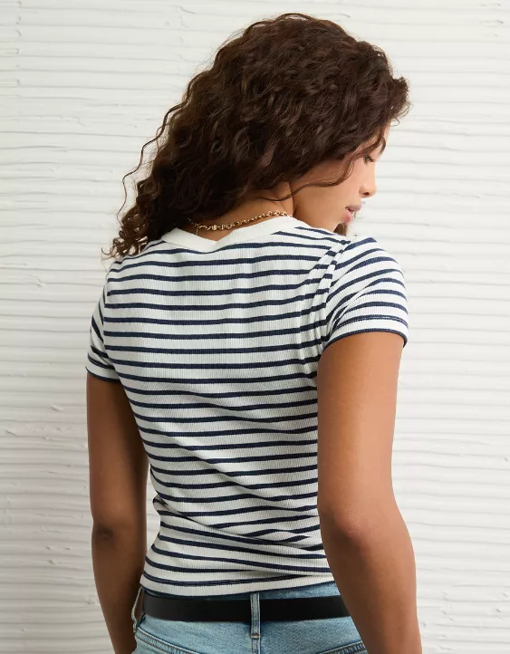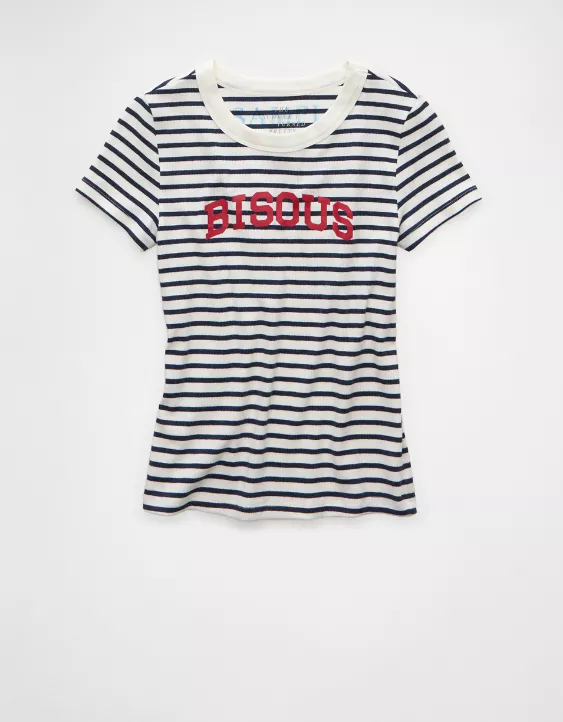 AE X The Summer I Turned Pretty Graphic Hey Baby Tee Retro Indigo Stripe