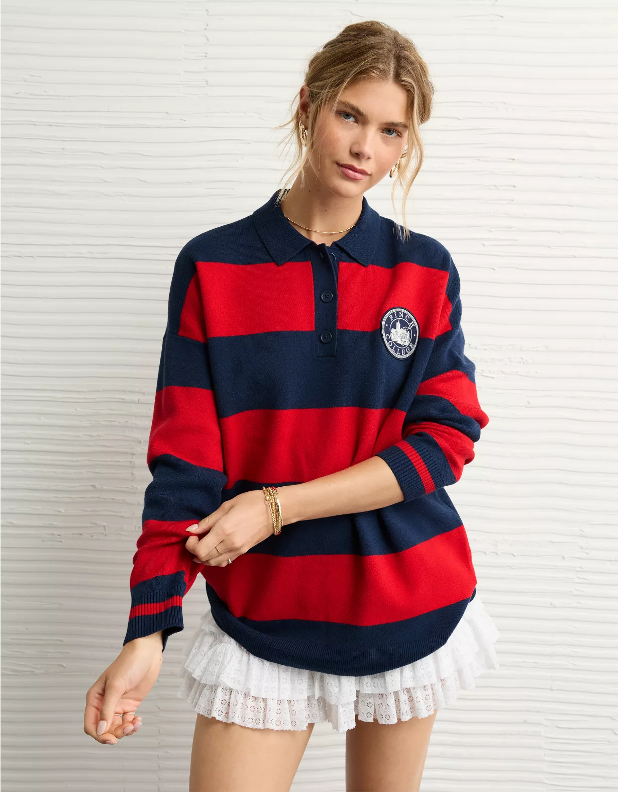 AE X The Summer I Turned Pretty Rugby Polo Sweater Navy