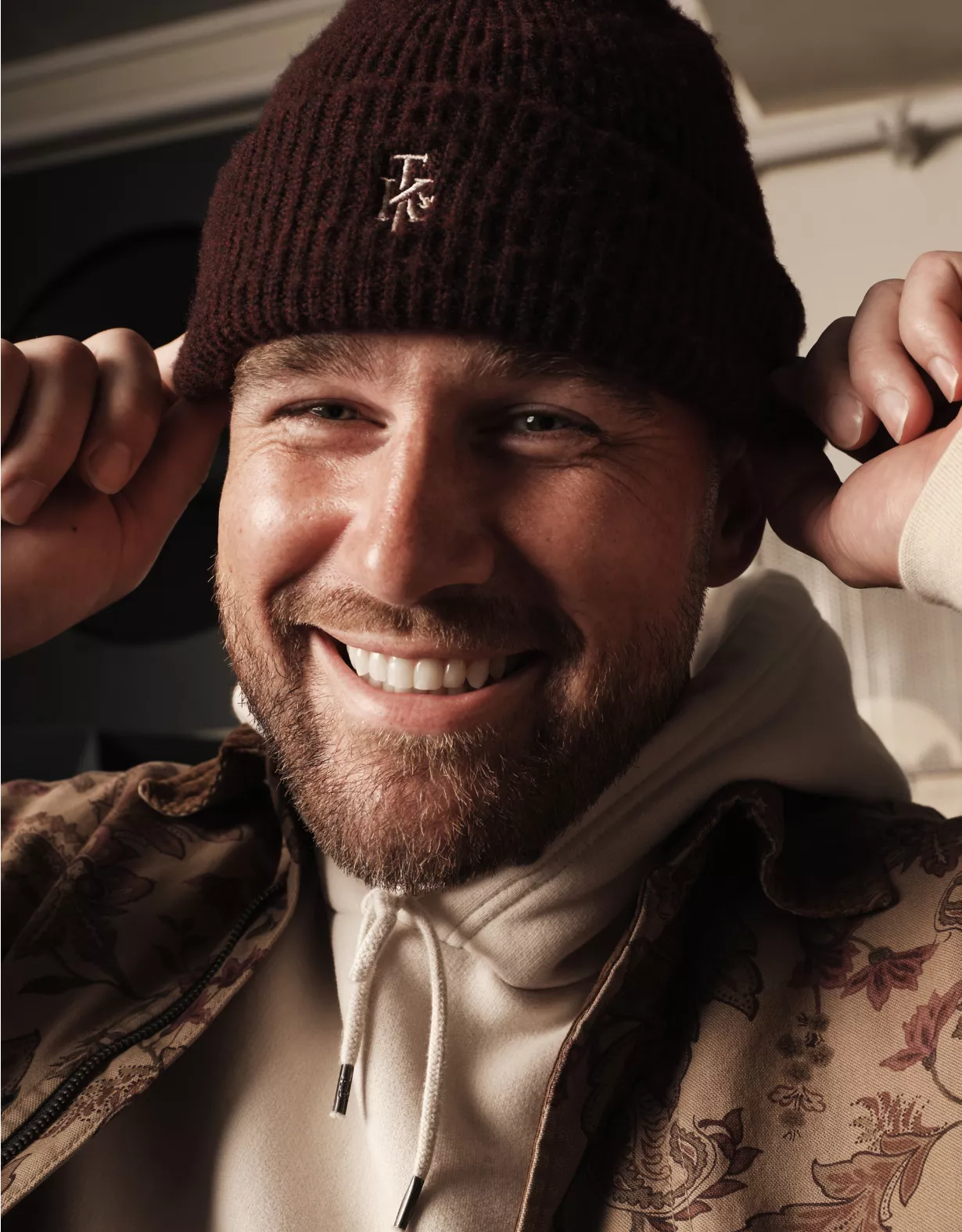 Reminiscient of a traditional watchcap, this ribbed beanie features a refined double layer construction and signature “TK” embroidery for a luxe touch.