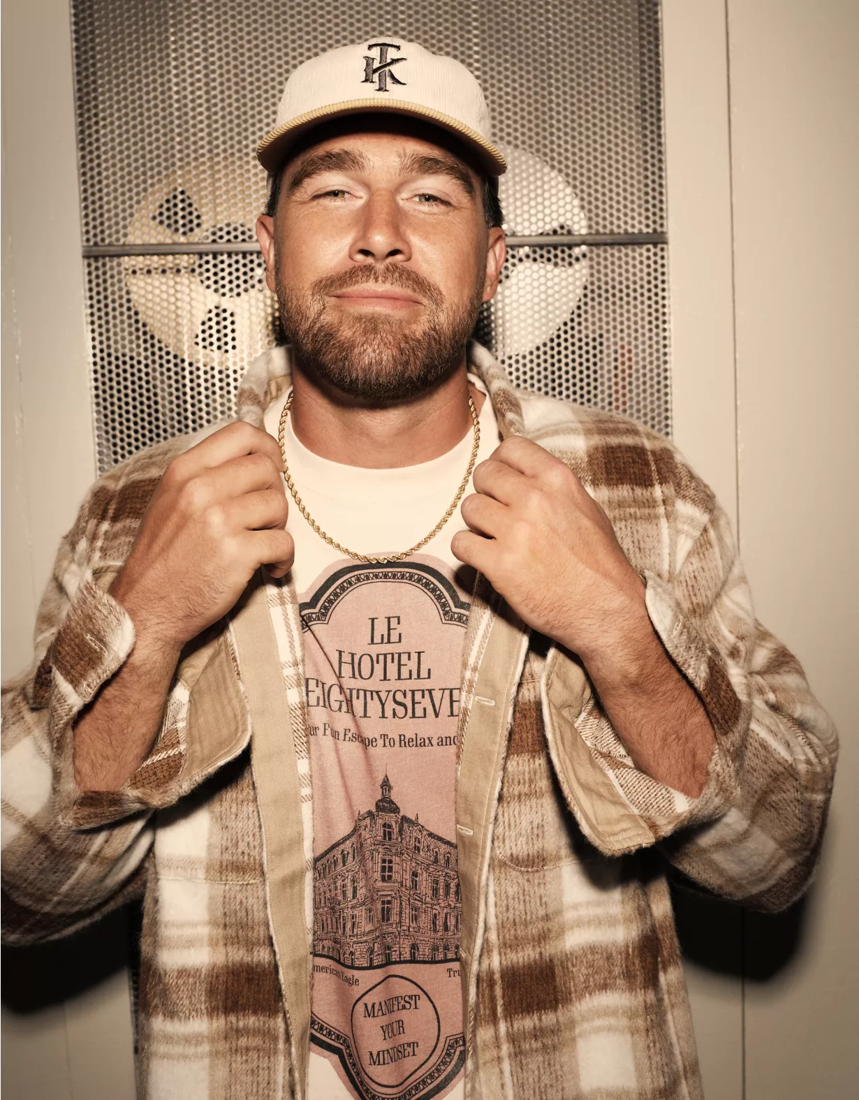 AE and Tru Kolors collaborated on this sueded cotton jersey tee, featuring a graphic that was handpicked by Travis Kelce and hand-sketched by the AE design team.