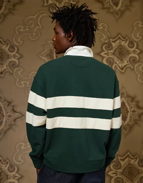 Inspired by a vintage Rugby jersey, this shirt is a modern take on classic prep style, featuring cool heritage details like a herringbone placket, signature “AE x Tru Kolors” logo values, and a heavyweight cotton blend piqué construction.
