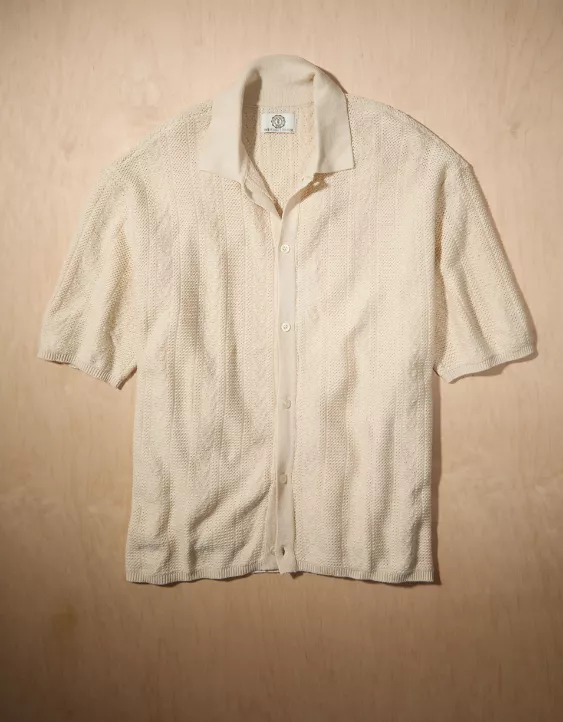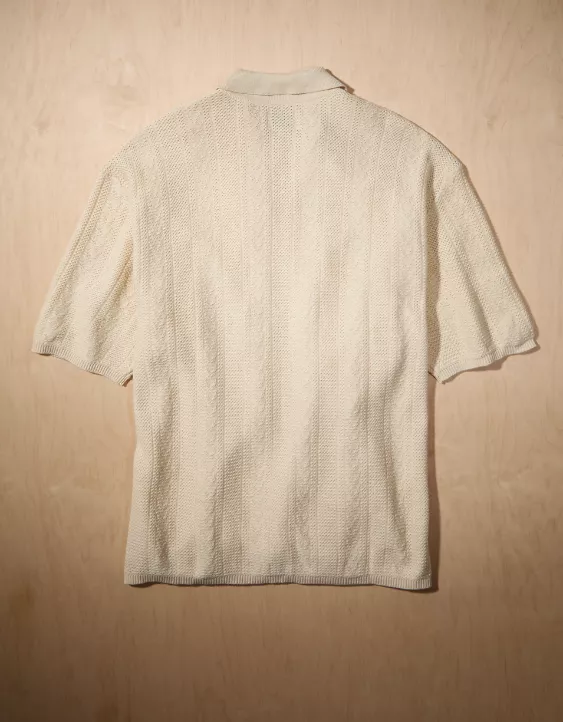 This classic sweater polo is reimagined with a luxe cable-knit texture and complete with pearlized values for a refined finish.