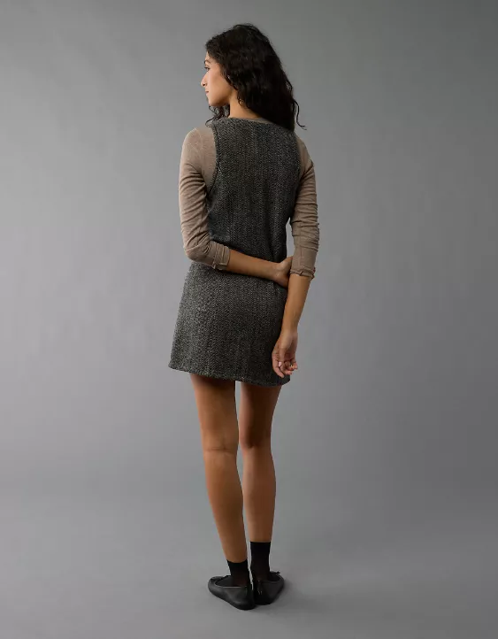 Buttoned-up menswear prints meet feminine style in this fun, flirty mini dress.