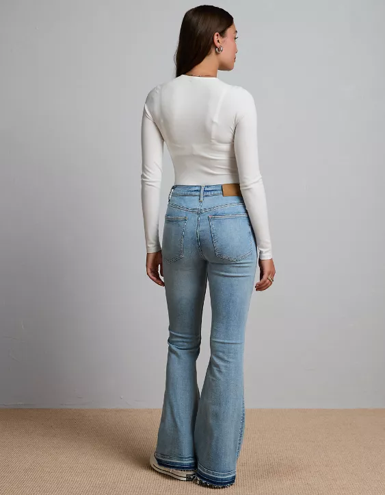 AE77 Premium High-Waisted Flare Jean Light Wash