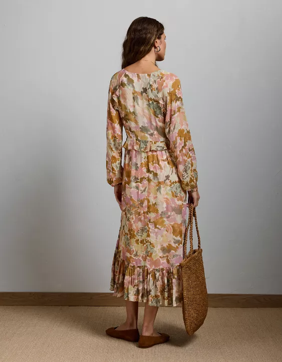A femme, flowy dress with playful ruffled details, cut from sheer chiffon for a luxe effect.