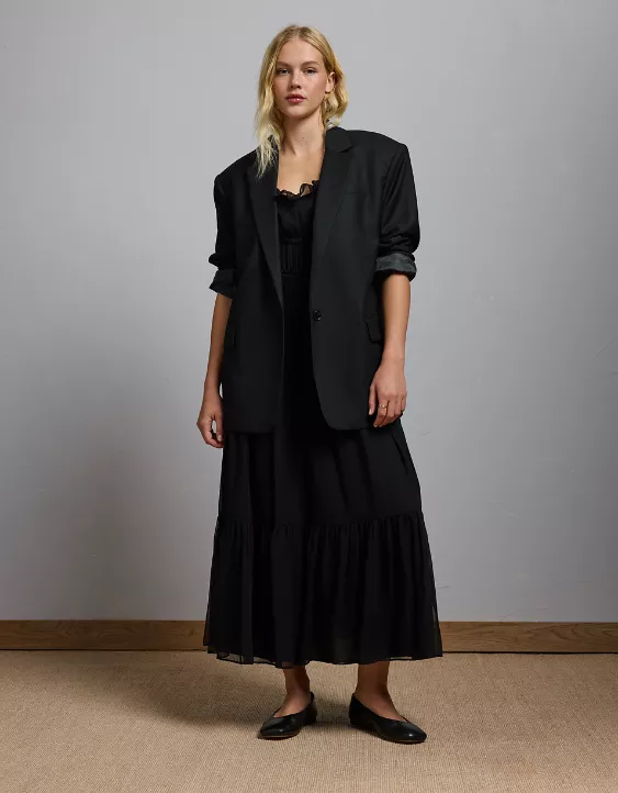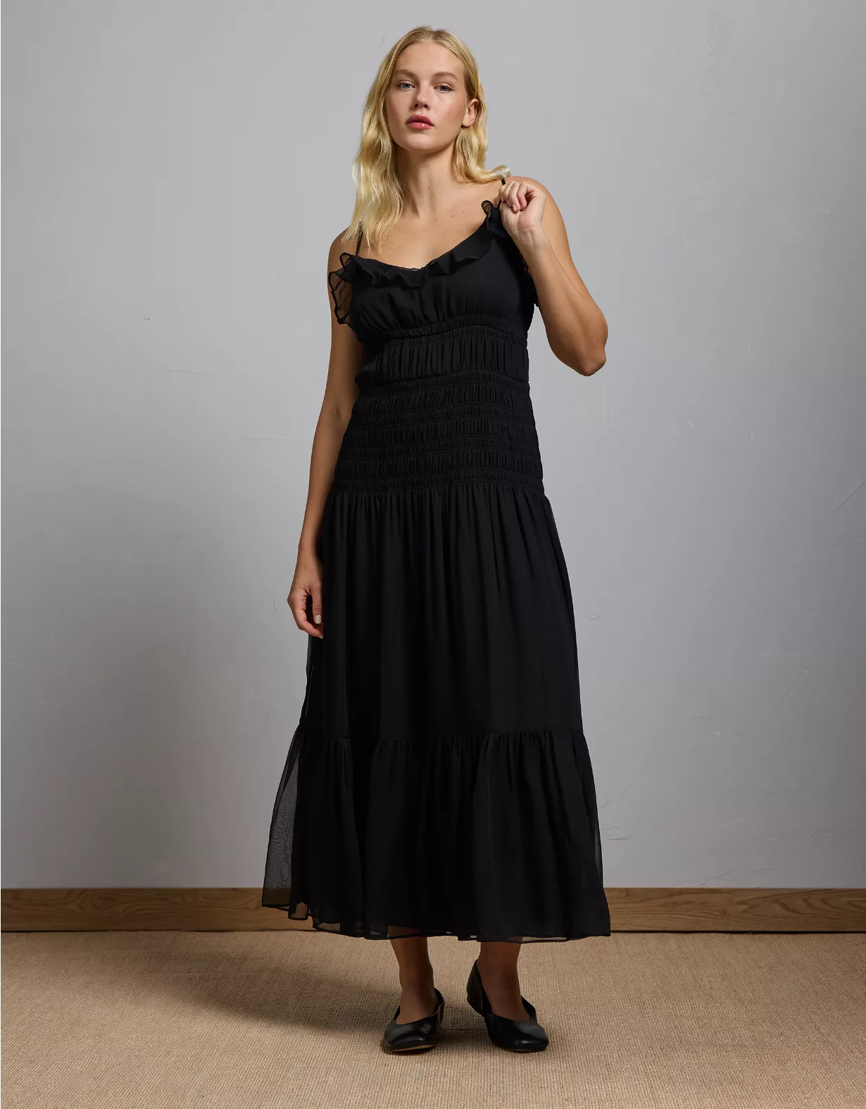 - Fitted and flowy maxi silhouette