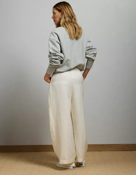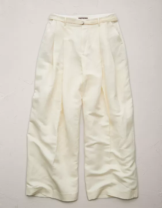 The quintessential double pleated trouser, featuring a voluminous wide leg and cut from a luxury-grade silk and linen twill.