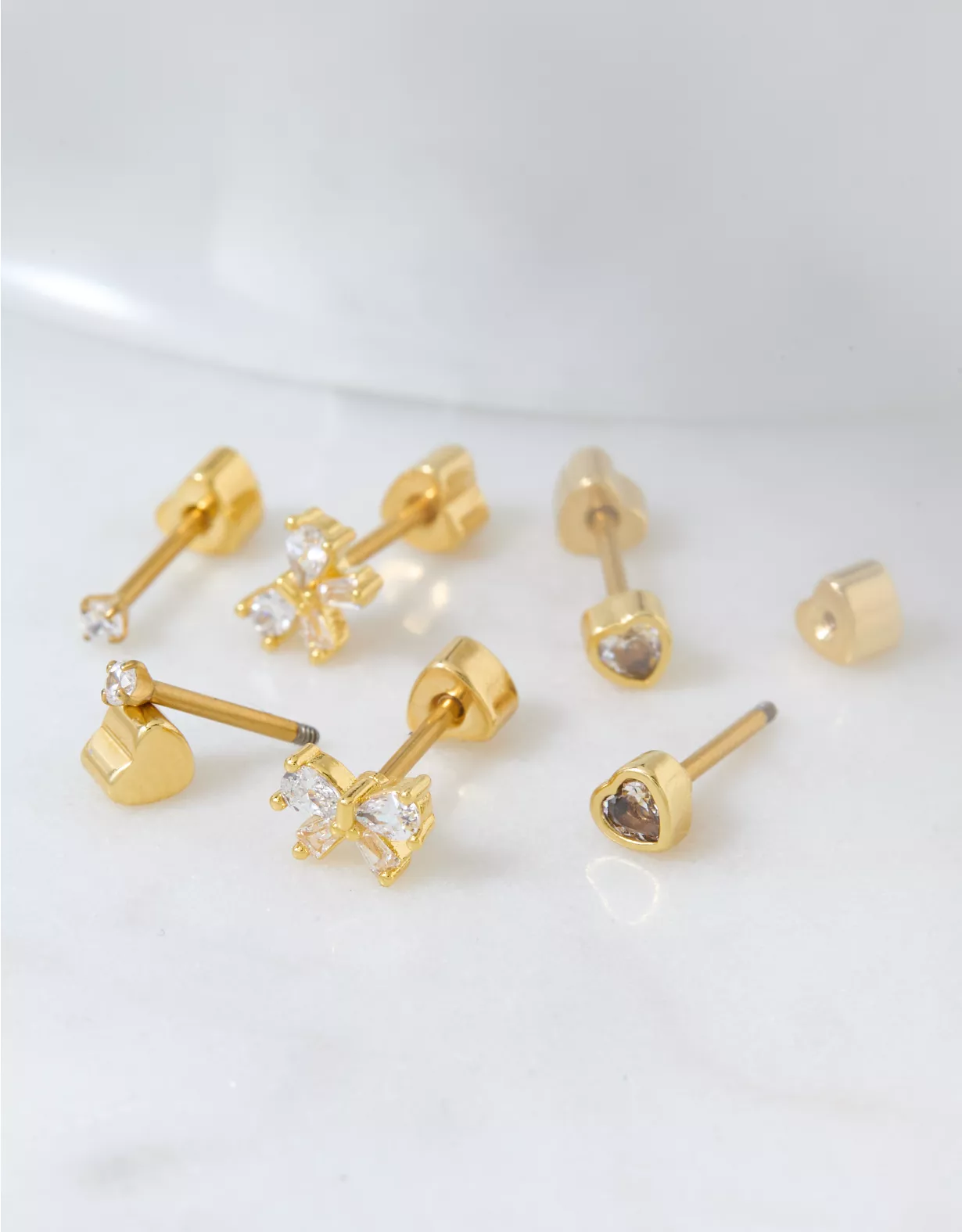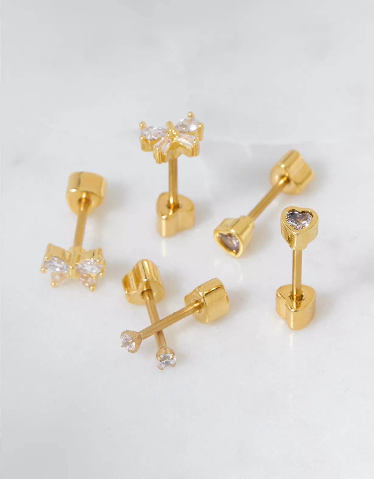 AEO Keepers Collection 14K Gold-Plated Stud Earrings 3-Pack Gold