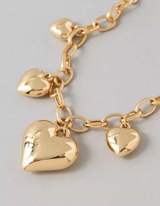 AEO Puffy Heart Charm Necklace Gold