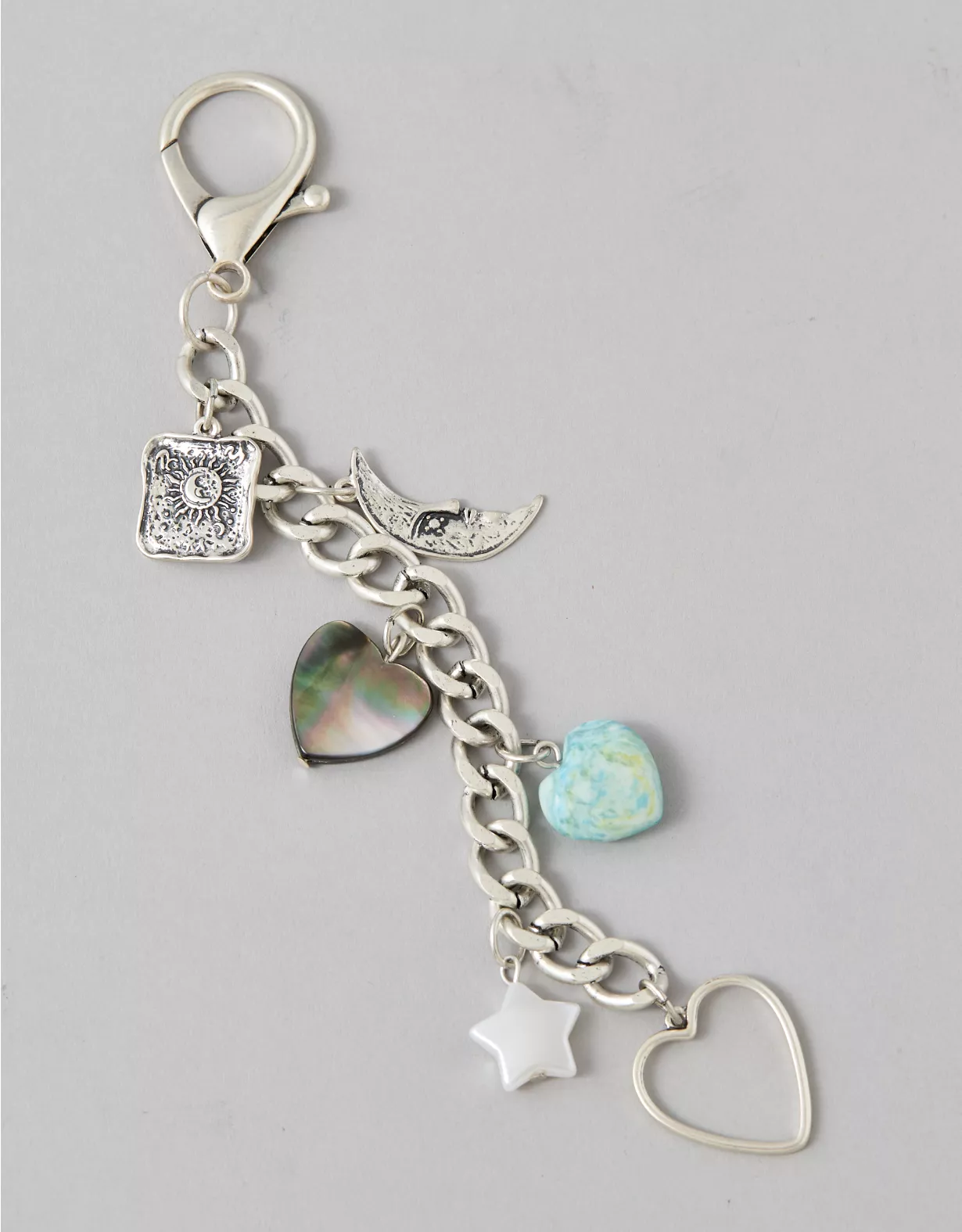 Add fun vibes to your bag with this bag charm featuring star and heart accents.